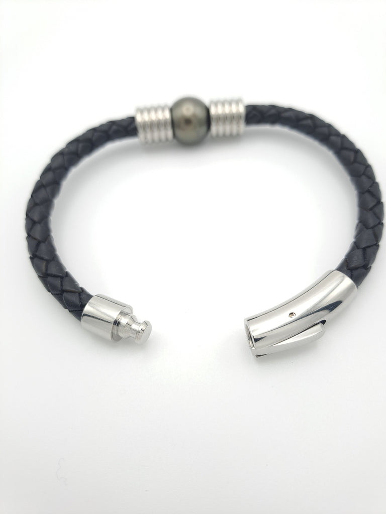 MAORI - Bracelet en cuir et Perle de Tahiti